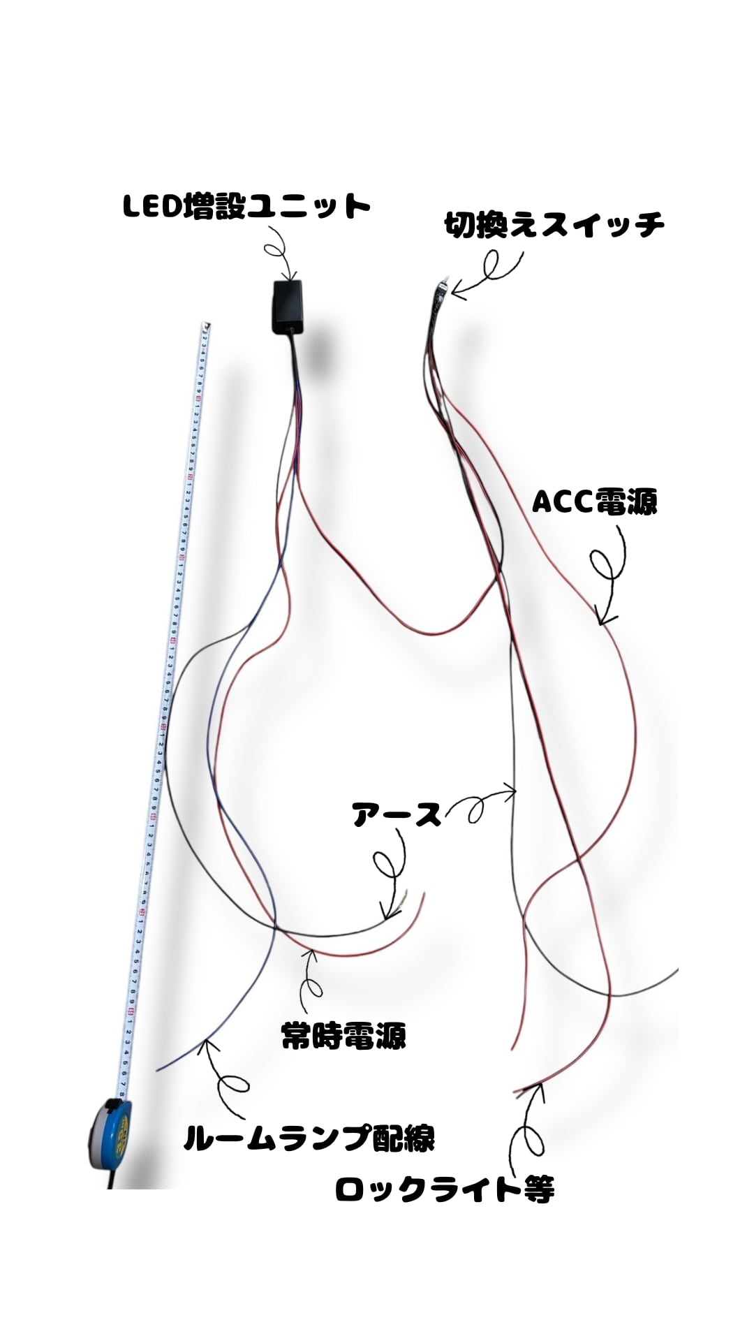 ・ロックライトやLEDライト等をスイッチでルームランプ連動orACC連動に切換えたい方(スイッチは加工がしやすいように12φ→5φに変更しています)